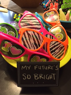 You can also use some of the party supplies or favors to create focal points that become decorations themselves, like these glasses from Party City that we gave to the kids.
