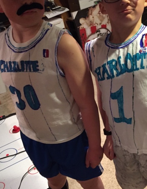 The kids dressed up, too, which was especially entertaining. My son and one of his friends spent all afternoon making jerseys to look like Dell Curry and Muggsy Bogues from the Charlotte Hornets. They just needed fake mustaches and some shorty shorts to complete the 80s NBA look. Their costumes were, like, totally radical, ya know?