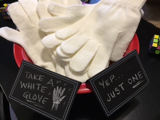 Or these white gloves from Walmart, purchased for less than 25 cents a pair at the end of the season. Michael Jackson was my FAVORITE back in the day, as proven by the creepy Michael Jackson doll my mom just found in the back of a closet. (If you are even thinking about having an 80s party, go buy these NOW on clearance! There is no legit 80s party without M.J.)